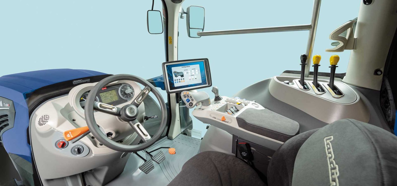 Landini 7 Serisi Stage V'de bulunan yeni tasarlanmış Lounge Cab, olağanüstü çok yönlü görüş kabiliyeti sunan arka menteşeli kapılara sahip yenilikçi dört direkli bir kabindir. Yeni kabin, çalışma konforunu en üst düzeye çıkarmak için kabin içi ses seviyesini yalnızca 70 dB'de koruyan oldukça verimli bir ses yalıtım sistemine sahiptir. Sürüş konforunu daha da artırmak için opsiyonel olarak sunulan bir elektrohidrolik aktif süspansiyon sistemi mevcuttur. Geniş ve mesafesi iyi ayarlanmış basamaklar, operatörün kabine kolayca girip çıkmasını sağlarken yolcu koltuğu düzgünce katlanarak daha kolay ve daha güvenli erişim imkanı sunar. Kabin içi, kolay temizlenen yumuşak malzemelerle tasarlanması nedeniyle otomobil tarzı bir görünüme sahiptir. Gösterge paneli ve direksiyon simidi, sürücünün ihtiyaçlarına uyacak şekilde eğim ve derinlik açısından elektrikli olarak ayarlanabilir. Dinamik havalı süspansiyon sistemine ve tam otomatik yükseklik ayarlı Alcantara döşemeli döner koltuk, sürüş konforunun en üst seviyeye çıkarılmasını sağlayan arkalık ısıtma ve havalandırma özelliklerine sahiptir. Çok işlevli sağ kol dayanağı, basit ve mantıklı bir şekilde düzenlenmiş ana traktör kontrollerini içerir. Ayrıca ergonomik olarak tasarlanmış çok işlevli bir kontrol ünitesi, önemli traktör işlevlerinin kolay ve sezgisel bir şekilde kontrol edilmesini sağlar. Kol dayanağına entegre edilmiş, basit tablet benzeri grafiklere sahip 12 inçlik bir dokunmatik ekran, operatörün traktör çalışma parametrelerini hızlı bir şekilde yönetmesine ve ayarlamasına olanak tanır. Lounge Cab'in standart donanımında soğutmalı kabin içi bir eşya bölmesi, bir şişe tutucu, mobil cihazları şarj etmek için 12V soketler, bir iç ayna ve yükleyici işlemlerinin daha rahat görünmesini sağlayan açılır şeffaf bir tavan kapağı bulunur. Kabin tavanına entegre edilmiş, yüksek verimli otomatik klima kontrol sistemi, dış hava koşulları ne olursa olsun kabin sıcaklığını istenen seviyede korur.