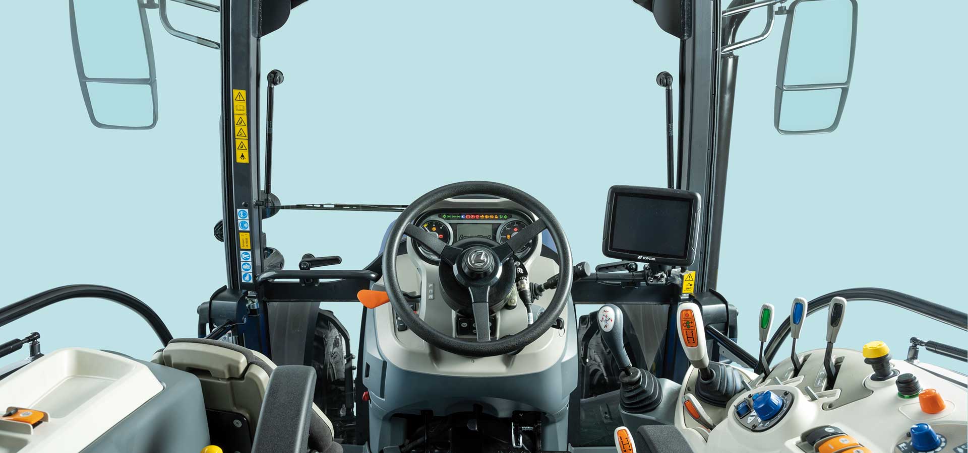 Toplam Görüş Slim kabini iki noktada sabit veya mekanik olarak askıda olabilir ve böylece bu iki özellikle birlikte süspansiyonlu ön aksa destek olarak operatörü titreşimlerden korur ve hareket halinde ve çalışırken operatöre daha yüksek konfor sağlar. 4 direkli yapısı, camlı alanı 360 derecelik maksimum boyutta görüş açısını sağlar, küçük alanlarda ve hatta 10 LED ışığı sayesinde geceleri çalışmayı kolaylaştırır. Bu şeffaf kabin, ön yükleyici kullanılırken tam görüş sağlar. Direksiyon simidi ayarlanabilir ve teleskopiktir, düğmelerin kullanımı ergonomik ve kullanıcı dostudur. İç kısım otomobil tarzındadır, sahip olduğu klima her zaman ideal çalışma ortamı sağlar. Ayrıca içerisinde DAB radyo ve entegre eller serbest mikrofonla Bluetooth bulunur.