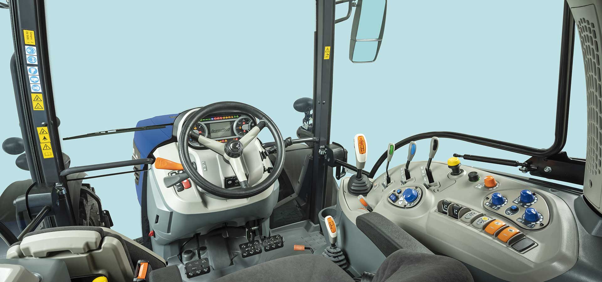 Tam geniş ön görüş mesafesi, Stage V egzoz sonrası sirkülasyon ve SCR sisteminin kaput altında konumlanması ile yeni Landini ailesi hissine uygun kompakt bir traktör hattı sağlanıyor. Geniş ön görüş mesafesi, 4 sütunlu kabinle tamamen genişletildi. Kabinin doğal havalandırması için açılır kapaklı sunroof ve 10 LED çalışma ışığı sayesinde gece çalışması gibi tüm ön yükleyici işlemleri de bu sayede daha kolay hale getirilmiştir. 96 mm mekanik kabin süspansiyon sistemi ile operatör konforuna daha fazla önem verilmektedir. Silindirler ve ön yükleyici, askı ve yarım hızlı kavrama için yeni bir joystick içeren kontrol konsolunda benimsenen ergonomik çözümler ile bağımsız frenli ve ön aks süspansiyon seçeneği sayesinde karayolu taşımacılığı sırasında da kendini gösteren konfor.