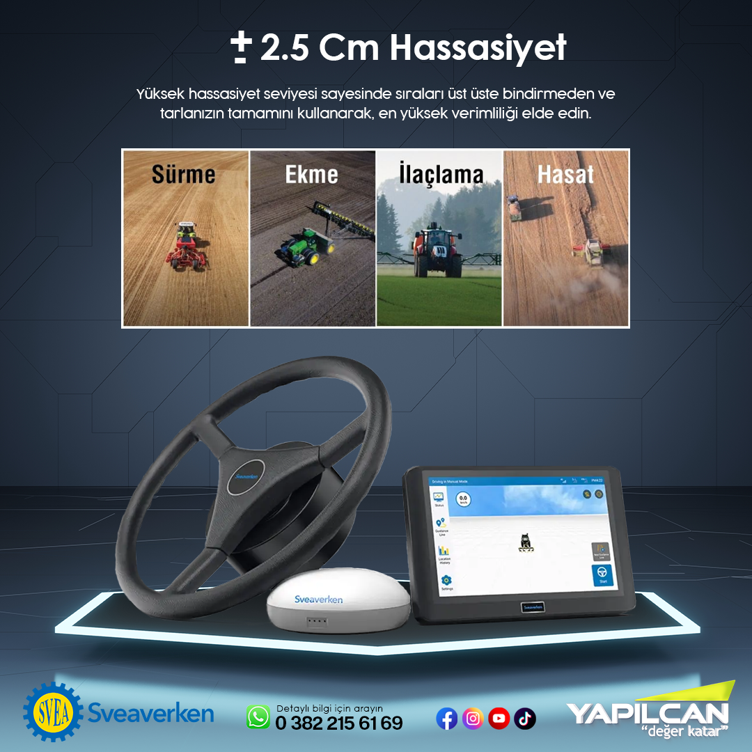 • 2. İnsan Hatasını Azaltma: : Otomatik dümenleme sistemleri, operatör hatalarını en aza indirir. Hassas sensörler ve yazılım algoritmaları sayesinde traktör, en zorlu koşullarda bile güvenilir bir şekilde yönlendirilebilir.